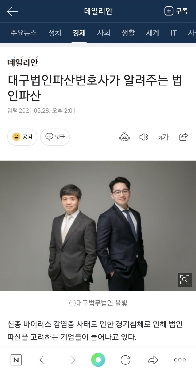이용호 도산전문변호사 법인파산 관련 정보 언론보도